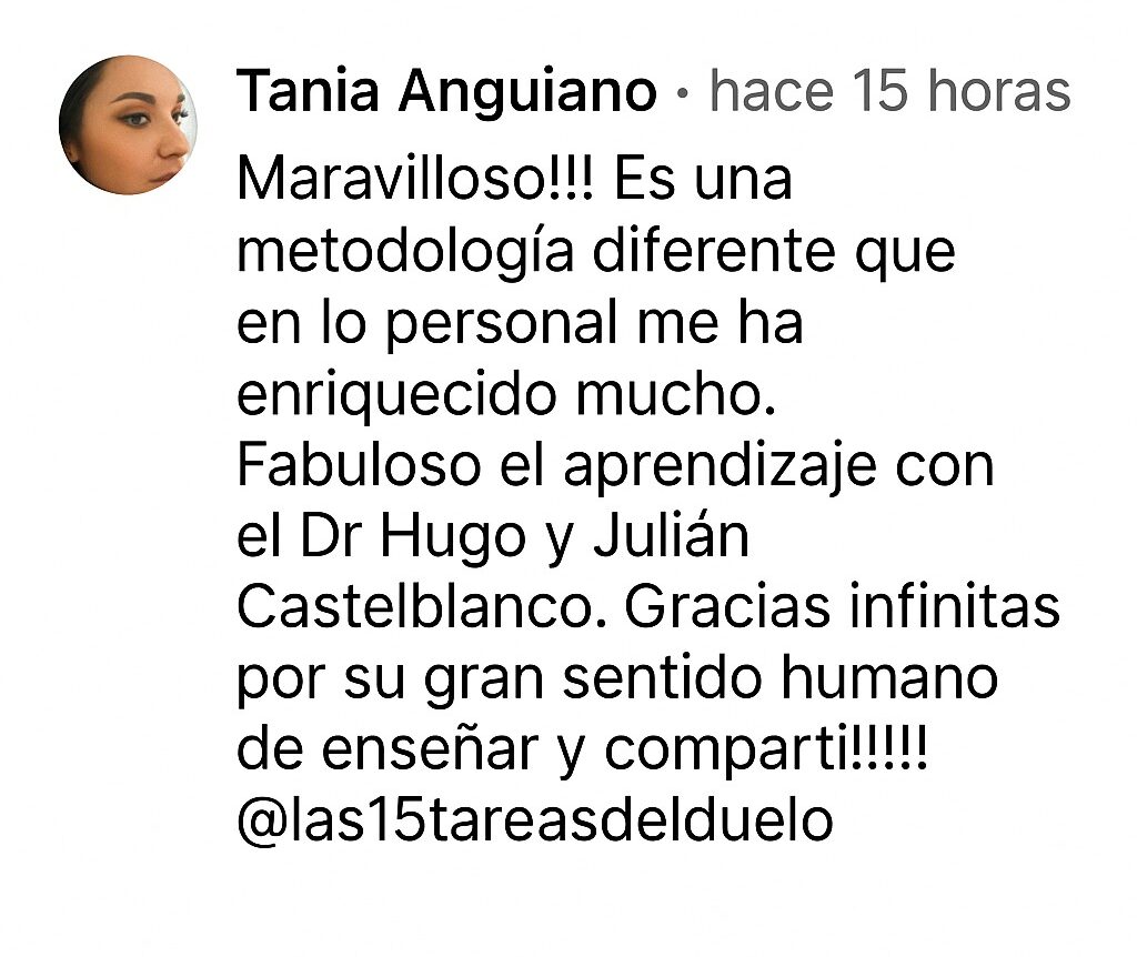 - Si ya llevas años acompañando duelos, te ayuda a ordenar y actualizar lo que haces, integrando las 15 tareas a tu estilo de intervención.